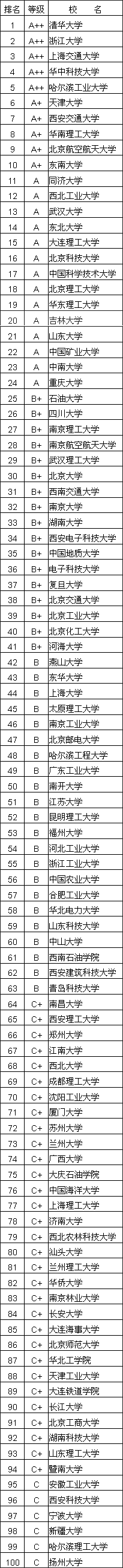 2004中国大学工学前100名